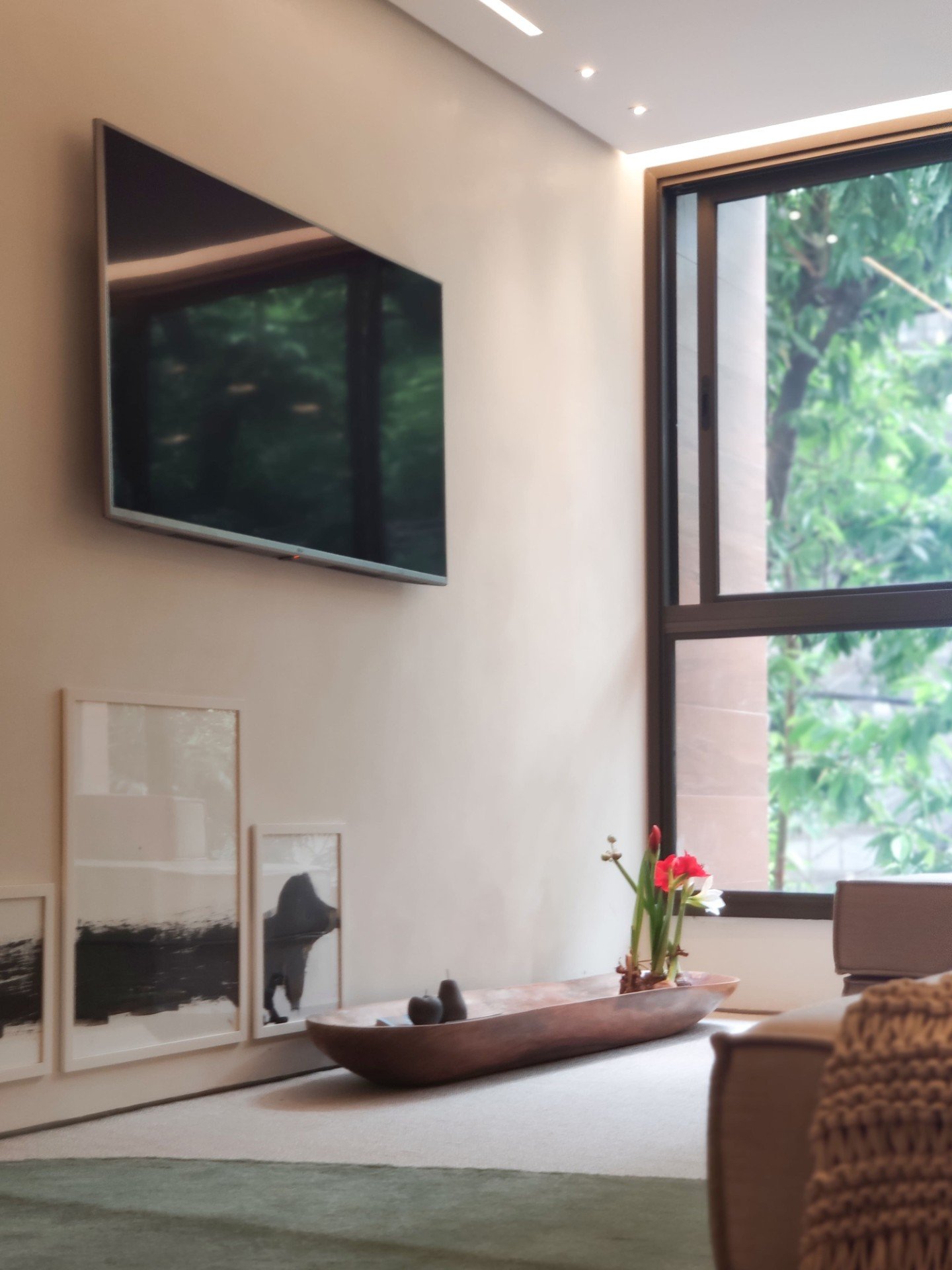 Amantes e colecionadores de arte, a disposição das peças acontece de forma natural e ao mesmo tempo estritamente calculada.