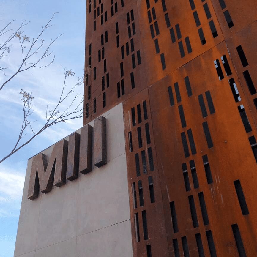 Art stands out in the panoramic elevator, surrounded by an eight-story, hand-painted mural that honors 16 personalities whose legacies inspire new generations on every journey. A large corten steel panel over 20 meters long reinterprets the song “Feeling Good” by Nina Simone—one of the honorees—transforming it into art and matter.