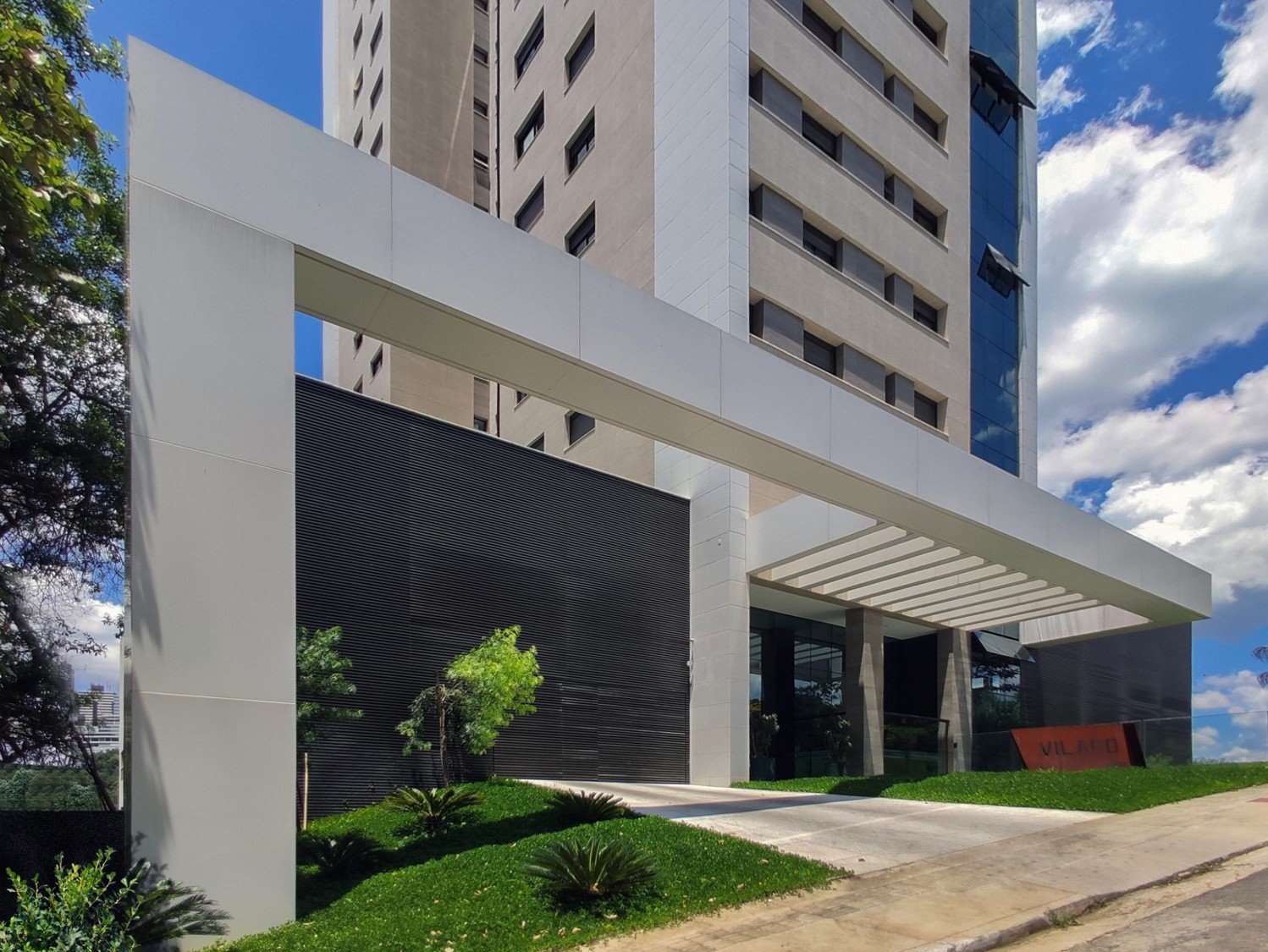 O conceito de design da fachada surgiu por meio de um gesto único de uma linha de pórtico que inicia no solo e se desdobra pelos 24 pavimentos, coroando o edifício e retomando para seu ponto de origem. A reaprovação dos projetos na prefeitura permitiu o aperfeiçoamento das soluções pré-elaboradas.