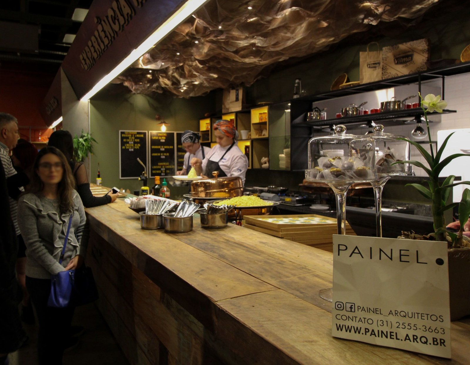 The architectural challenge was to enhance the praiseworthy characteristics and skills of this renowned Buffet, so it was designed so that the dishes were made at the show (live for the client), demonstrating all the customization and mastery of the gastronomy and the processes of a service of excellence.